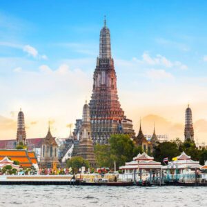 Le Wat Arun, également connu sous le nom de “le temple de l’Aube”, est un temple bouddhiste situé sur la rive ouest de la rivière Chao Phraya à Bangkok, en Thaïlande. Avec sa tour centrale ornée de mosaïques colorées et de sculptures en pierre, le temple est considéré comme l’un des plus beaux temples bouddhistes de Thaïlande. La beauté de son architecture et de ses sculptures, ainsi que son importance spirituelle et culturelle, font du Wat Arun un lieu emblématique et incontournable pour les touristes qui visitent Bangkok.