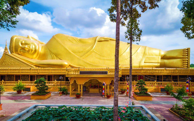 Pagode Vam Ray avec la plus grande statue de Bouddha couché au Vietnam
