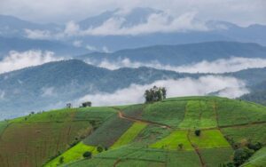Aujourd’hui, vous vous rendrez en voiture jusqu’au point le plus élevé de la Thaïlande au parc national de Doi Inthanon. Le parc regorge de sentiers naturels ombragés, de belvédères, de jolies pagodes et de superbes cascades. En chemin vers le sommet, vous ferez une pause pour vous dégourdir les jambes et découvrir une cascade de 98 pieds (30 m). De là, vous continuerez jusqu’à un village Karen dans le district verdoyant et vallonné de Mae Chaem dans la province de Chiang Mai.