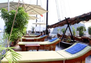 Dragon Pearl Junk est une toute nouvelle jonque chinoise en bois avec une équipe professionnelle, loyale et dévouée. Réparti sur 3 ponts, il dispose de 11 cabines entièrement équipées, d’un bar avec sièges moelleux et d’une télévision à écran plasma, d’un restaurant gastronomique, d’un coin repas extérieur et d’une terrasse.